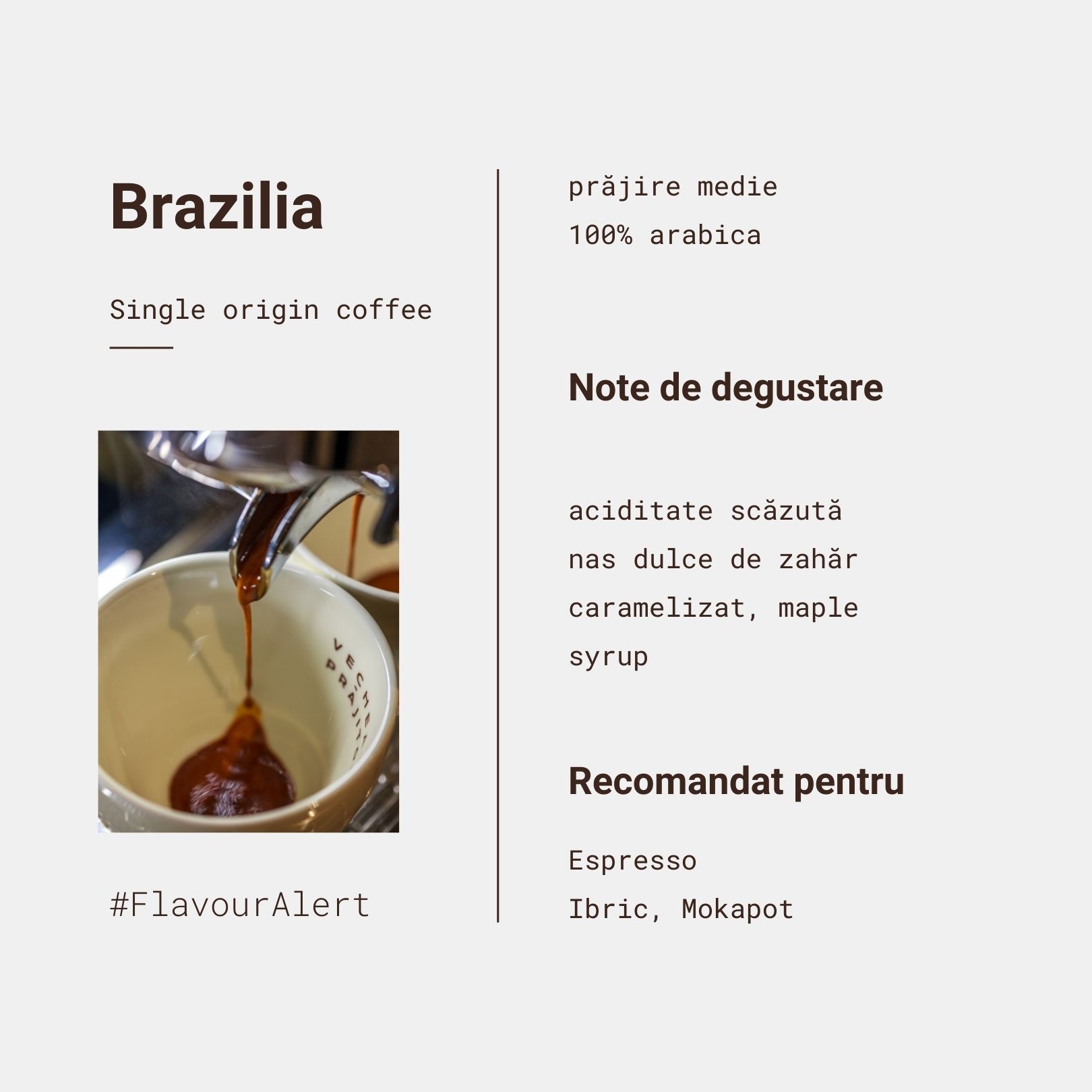 Cafea de origine din Brazilia cu note de ciocolată și caramel.