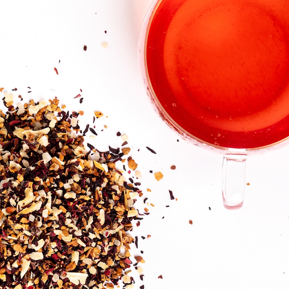 Ceai de fructe: hibiscus, coajă de măceșe, bucățele de mere, ananas, cocos (100 gr)
