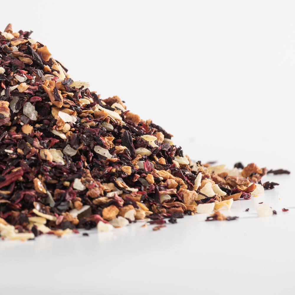 Ceai de fructe cu flori de hibiscus, bucăți de căpșuni, ananas, mere, nucă de cocos, bucăți de măceșe (100 gr)