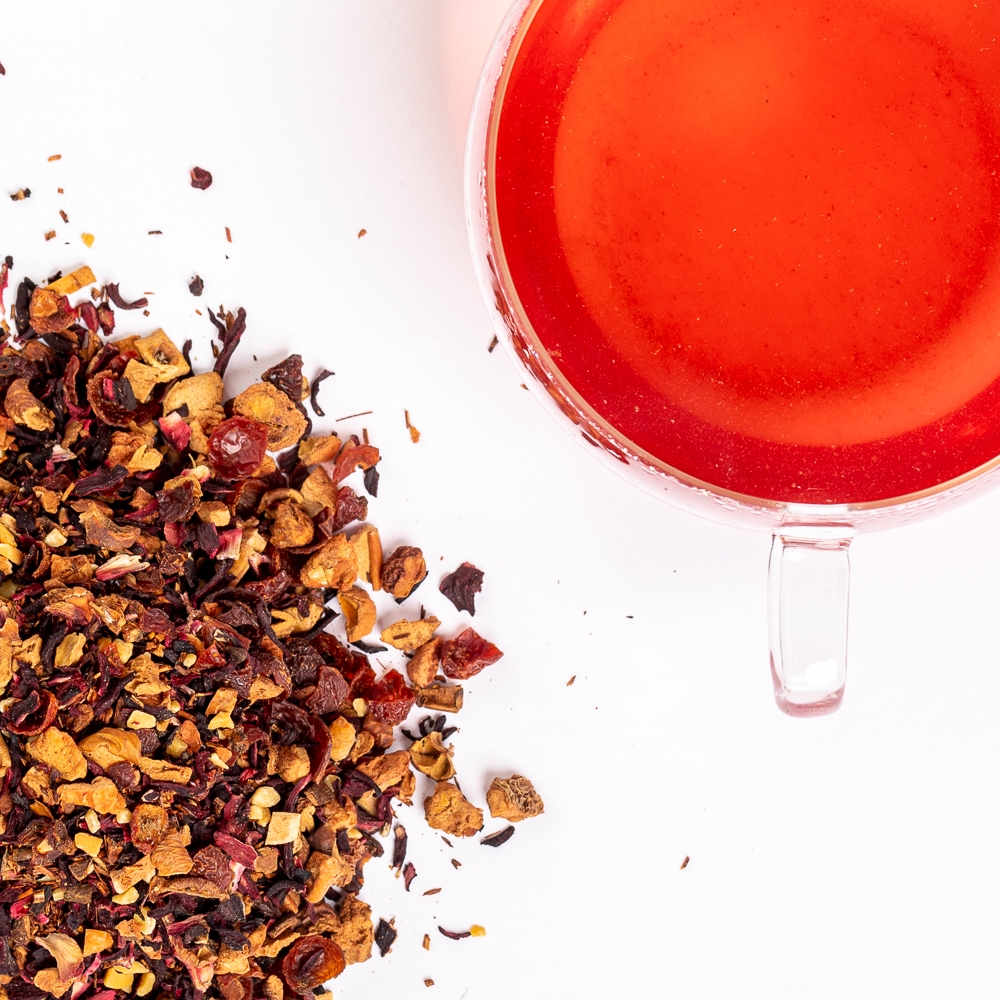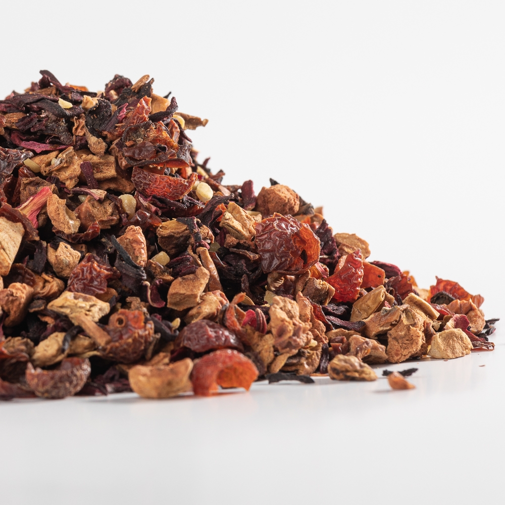 Ceai de fructe cu bucăți de mere, flori de hibiscus, bucăți de măceșe, bucăți de migdale, scorțișoară (100 gr)