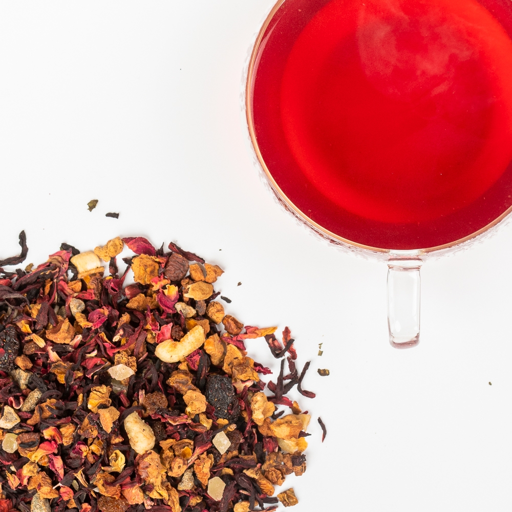 Ceai de fructe: hibiscus, ananas, struguri, mango, petale de floarea soarelui (100 gr)